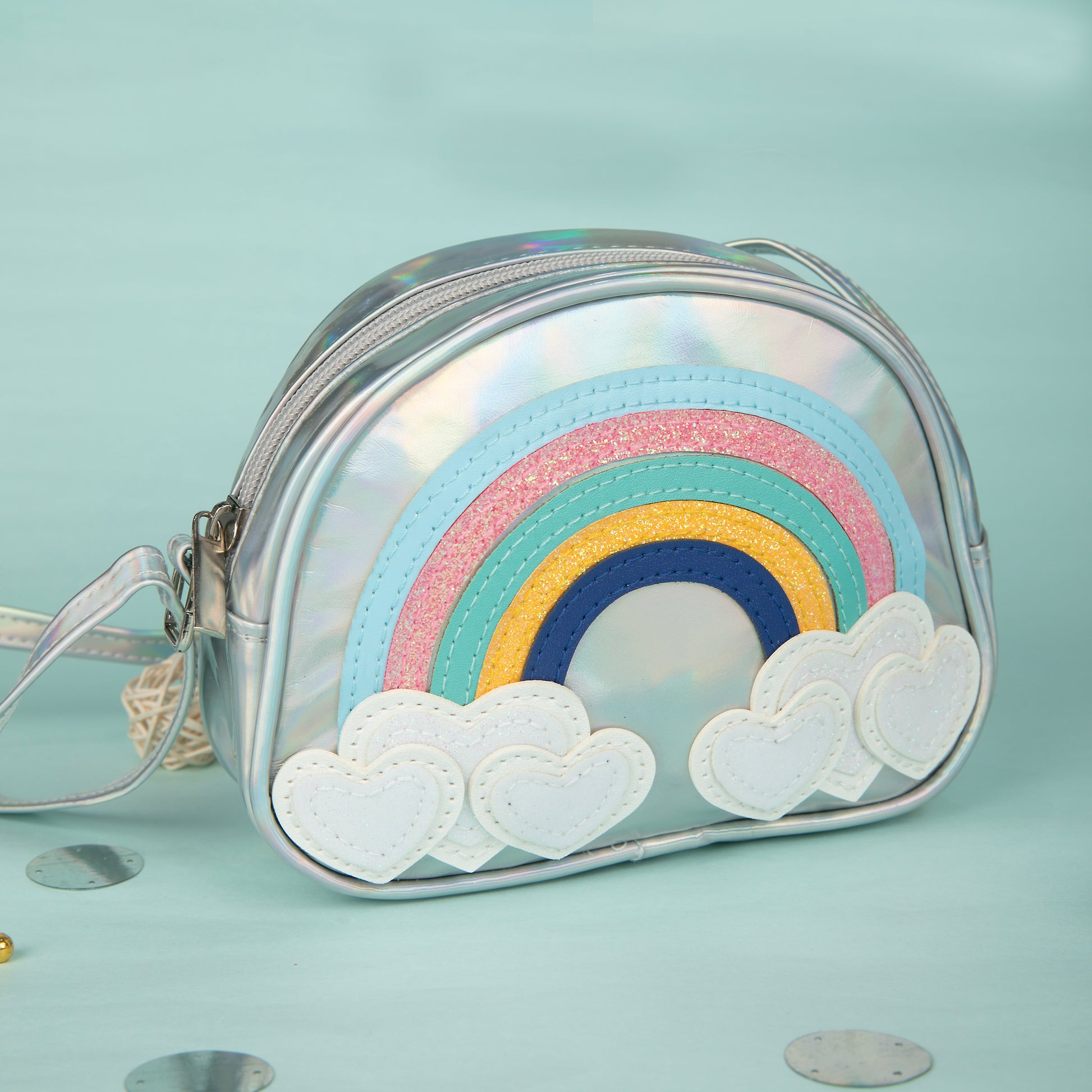 SILVER RAIBOW SLING BAG FOR GIRLS- SILVER